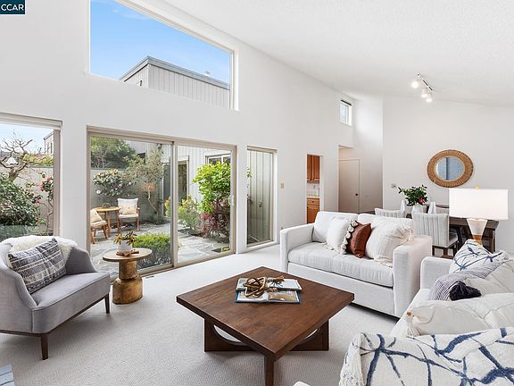 Step into coastal-inspired living at 1019 Tobago Lane, a charming 2 bedroom, 2 bath end unit oasis on Bay Farm Island. This home enjoys vaulted ceilings, abundant natural light from the many dual pane windows, and has been freshly painted and carpeted. The primary suite is spacious with vaulted ceilings, ensuite bathroom, and a walk-in closet. Outside, through the sliding doors, the private stone patio with mature trees offers a place to unwind and enjoy one of Alameda's famous gentle zephyrs. Located in beautiful Garden Isle HOA, the home has access to the community pool, clubhouse and the many lush greenbelts and walking paths that meander through the neighborhood. The location is ideal just minutes from the Harbor Bay Ferry Service, Corica Golf Course, abundant shopping, Oakland International Airport, and beautiful San Francisco Bay.