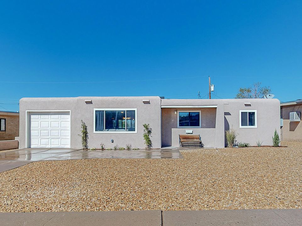 Great and Convenient NE Heights location. Close to schools, shops, restaurants and groceries. Only minutes away from I-40. This beautifully remodeled home will not disappoint. Kitchen boast new cabinets, quartz countertops, glass tile backsplash and sleek and modern Samsung stainless steel appliances. Kitchen island with barstool seating makes for a great space to gather and entertain family and friends. Laundry room just off the kitchen has additional storage, counter space & pantry. New water heater. New flooring and fresh paint throughout the home. Bathrooms remodeled with beautiful porcelain tile, new vanities and fixtures. Refrigerated air/combo unit. Storage shed out back sits on a concrete slab. This home is ready and set for its new owners! Schedule your own private showing today