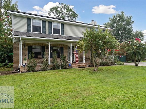 This Beautifully maintained five bedroom, 2 bathroom home is nestled in an established neighborhood with attractive landscaping. The large porch entry is a perfect spot to relax and enjoy ! As you enter the stairway to the upstairs level you find a living room with a striking beam ceiling, carpeting ,and plenty of natural light. Interior has been repainted. As you enter the kitchen you are greeted by beautiful oak cabinetry and a cozy breakfast dining area. The space also features a convenient island for meal prep, along with pantry cupboards for storing spices and canned goods.The kitchen is finished with Corian stone Countertops, tile backsplash, and newer LG appliances to include Refrigerator, Dishwasher, Smooth -top Range and built -in microwave. The kitchen door leads out to a spacious 10X20 wood deck perfect for entertaining and cookouts! Downstairs, you will enjoy a Family room with brick fireplace for those cool winter nights. There are 2 additional spacious bedrooms one of which serves currently as the Master Bedroom with NAFCO Flooring. A Full bathroom is adjacent featuring Ceramic Tile tub, single marble top vanity and built-in medecine cabinet. All Bedrooms have faux wood blinds, ceiling fans for added comfort and sizable closets. The laundry room is equipped with washer/dryer which conveys which is an added bonus! From the laundry room you can step out onto an outside patio located beneath the deck perfect for outdoor relaxation and a shady oasis. Additionally the home has a chain link fence across the back and privacy fence on 2 sides complemented by mature trees and shrubbery for a sense of seclusion. The Front and back yards have a sprinkler system to maintain the yard and garden areas. Pick some fresh fruit from your Fig and Tangelo trees ! Vinyl Storage building with metal roof for extra storage . An additional patio to the side of the home is a great spot for a fire pit! The driveway has an added parking pad providing extra space for multiple cars. This home comes with a Termite Bond too. Conveniently located near Ft.Stewart and shopping retail areas, this home offers easy access to amenities and services. A Great Place to call Home....