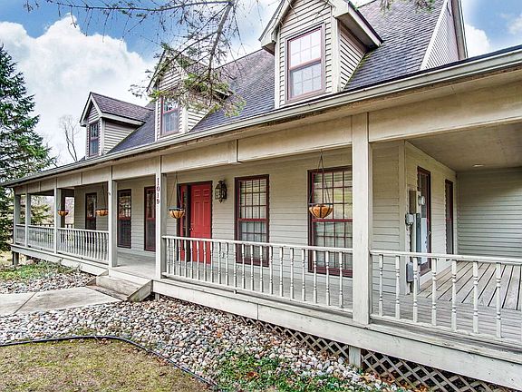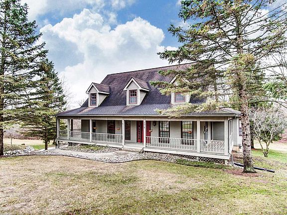 Almost 3 acres at the edge of Angola with pond and serene setting. Fully equipped family home on basement with oversized garage. Main level bedroom with adjacent full bath including jetted tub and separate shower, dual washbasins and large walk in closet. Sunroom on southern exposure for plants or reading room. Three bedrooms and bath on upper level. Basement is finished and offers additional sleeping room, game room and storage. Clay pizza oven on patio remains. Carport shed remains. Property line dimensions are estimated, please refer to survey on file. Schools TBD by buyer. Steuben Lakes Regional Waste district is installing sewer.