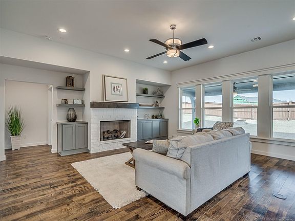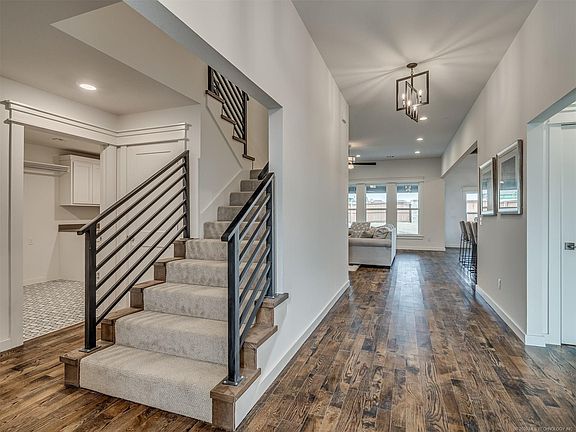 The Taylor plan gives 2beds down, luxury master suite with walk in closet connected to oversized utility, 2beds and game room up! Hardwoods throughout bottom level, designer light selections, custom iron stair rail, beams, quartz countertops, full gutters, full brick, & 5-zone sprinkler! Situated in Jenks near Tulsa Hills, this home is energy efficient & move in ready!