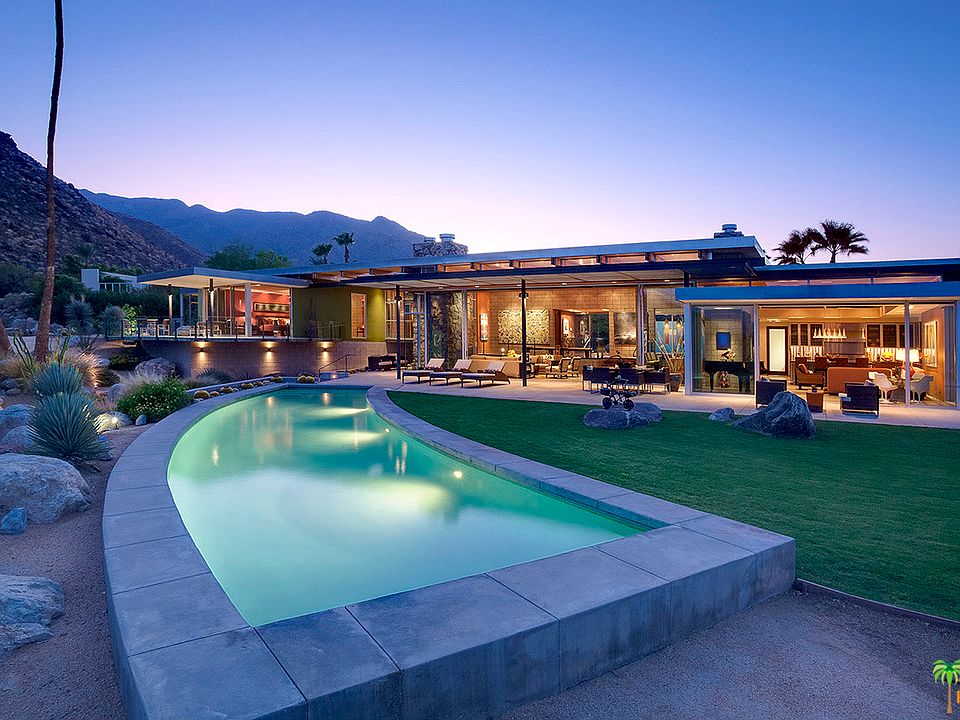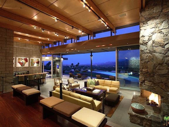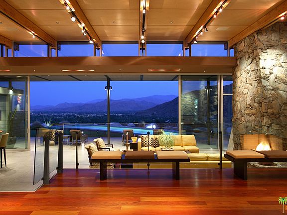 Arguably the finest in design, engineering, details, finishes and view siting of any New-Century Palm Springs home. Taking cues from the masters of mid-century modern design, Ana Escalante, AIA utilized and updated the hallmarks of block, wood, steel, glass and stone to create this architecturally significant, one-off masterpiece. Published multiple times locally, nationwide and internationally, this home provides both open, flowing spaces, while at the same time offers total privacy. The main house contains a master suite which is its own glass pod floating over the property and offers dual baths, room-sized closets and outdoor spa. Two ensuite guest rooms plus a powder room complement the living/dining/bar & kitchen/family areas. The guest house mimics the architectural theme with 2 ensuites, open/closed salon & wet bar. The arc of the pool leads your eyes to the City lights hundreds of feet below. 114 Solar panels largely offset energy costs. Climate controlled garages for 4!