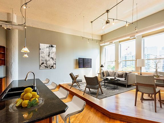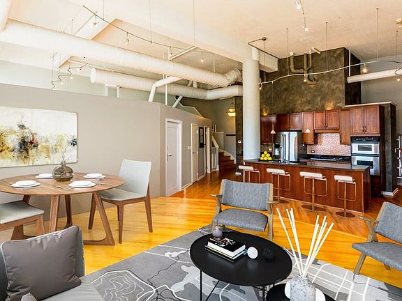 Spacious penthouse loft in the West Loop with tall windows, high ceilings, & unobstructed east-facing downtown views from both levels and roof deck! Conveniently located near the best the West Loop has to offer! Open Concept living on main level with updated kitchen featuring 42" Cherry cabinets, granite countertops, Stainless Steel appliances, & massive island with breakfast bar. Master suite has 2 walk-in closets and a luxury remodeled full bath with steam shower. With the private roof deck, this condo boasts over 1800 square feet. Several recent improvements include AC/Furnace/W/D/Fridge/Dishwasher, Tankless WH, New Paint in unit, New Roof & Exterior Paint. Originally a 2-bed unit, the seller will reconstruct the second bedroom prior to closing. Includes 1 heated garage parking space & lot of storage. Top-rated Skinner Elementary School district; close to Target/Mariano's/Whole Foods, parks, Randolph St, CTA Blue Line & 126 Bus, Metra, 290/90/94.