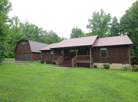 In the mountains of Tennessee, tucked back onto a private and secluded 4-acre tract in The Cumberland Cove Subdivision is that perfect cabin in the woods! Constructed in 2007 this wood-siding ranch home offers a split 3-bedroom, 2-bath floor plan. A huge covered front porch invites you into the large open living room with Pergo-style flooring, which is pet friendly. Kitchen is spacious with all appliances, great cabinet space, and nicely sized eat-in area. Bonus room great for entertaining is conveniently located off the great room. Master suite offers walk-in closet, separate soaking tub, and standup shower. Upstairs is a second finished bonus room perfect for recreation or hobby area! Open deck overlooks level, fenced back yard. Detached 2-car garage has plenty of room for both parking and tools. Be a smart investor, and get a great buy on a property that is surrounded by $250,000 and higher homes!
