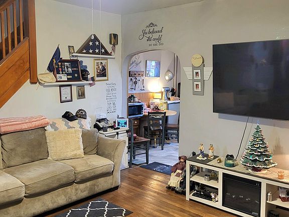 Come see this inviting three bedrooms and one-and-a-half-bathroom home! The spacious first floor showcases new hardwood floors in the living and dining room adding a fresh and modern touch. The primary bedroom displays a large layout with a double closet and private access to the half bath for added convenience. Though it is currently unheated, the versatile finished attic space adds even more potential for customization, whether you envision a home office, playroom, or additional storage. Outside you can enjoy the convenience of off-street parking leading to a fenced in yard, perfect for pets or outdoor activities. Don't miss out on this wonderful property that offers both immediate comfort and future possibilities! Square footage taken from county assessment data.