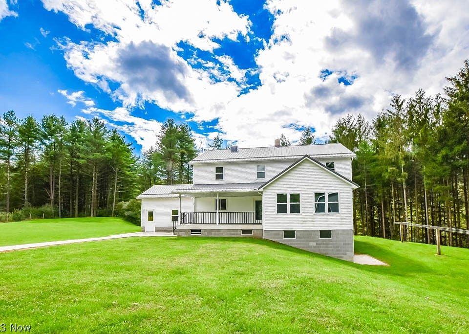 Enjoy the simple life in this custom built off-grid home on 28 secluded acres! This spacious eco friendly residence boasts an eat-in kitchen with counter seating at the peninsula, space for a dining table, solid elm kitchen cabinetry and an open concept to the living room. Just off of the kitchen is a home office, guest bath and a large mudroom with access to the full basement. Also on the main level is the master bedroom with en suite bath. Upstairs you'll find four more nice sized bedrooms and a full bath with a linen cabinet. The walk-out basement houses the Brunco wood burner and could be finished for even more living space or used for storage. Outside, there's a barn for livestock as well as a stocked pond for fishing! Although there is no electricity or wiring, solar panels provide power for the refrigerator and well pump, providing convenience while allowing you the freedom to be self-sufficient. If you're looking for a private retreat surrounded by nature, this home provides
