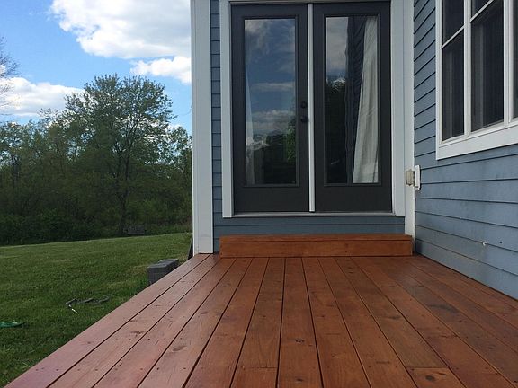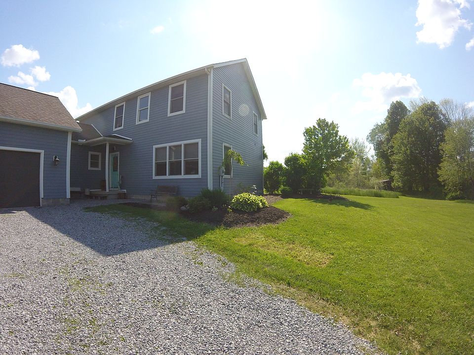 The home is over 600 ft off the road in the middle of what used to be a hay field. It has Hardieboard cement siding, a whole house water system with a UV light to kill bacteria, a Reverse Osmosis Water system in the kitchen, bamboo hard wood flooring and ceramic tile throughout (no carpet or vinyl), a geothermal heating and cooling system (which also heats the water), a wood-burning fireplace insert that can heat the whole house, butcher-block kitchen counters, solid oak doors throughout, and a partially finished basement (painted block and carpeting).