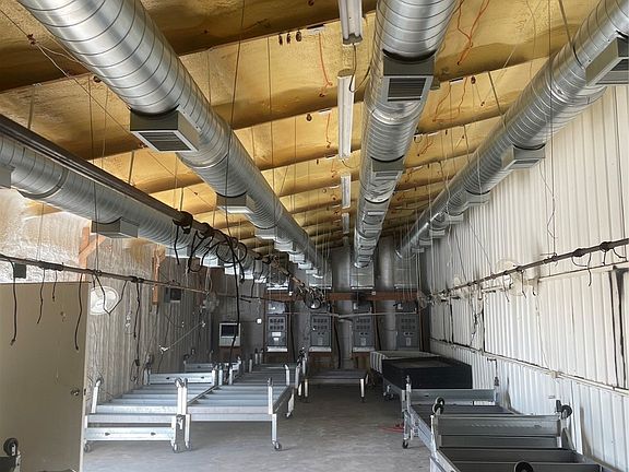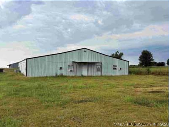 PRICED BELOW APPRAISED VALUE - 10 acres, with two large buildings, an 80x80 structure and a second 70x90 building. The larger building is fully plumbed. Inside is an office, a full mini kitchen, one full bathroom including a shower and two half baths making it possible for both work and living. Both buildings are powered by 3-phase electric service and connected to rural water, providing the infrastructure needed for industrial, agricultural, or commercial use with required zoning. SOLD AS IS with everything on site.