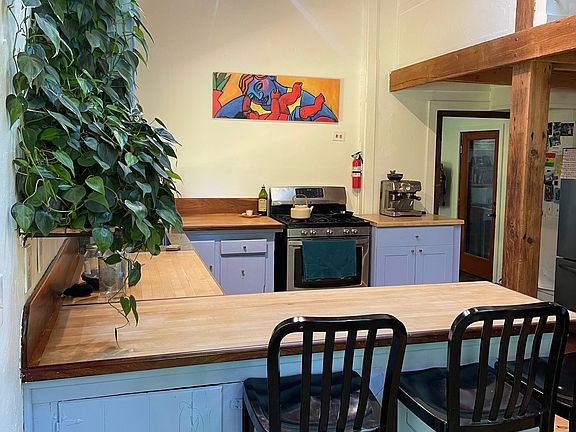 Our fully furnished home will be available January 1st-April 1st, 2025 when we travel abroad for three months. Step into a one-acre magical garden sanctuary tucked away behind a hidden gate. Our vibrant, custom, bright and inviting home is full of charm. An essential-for-winter large hot-tub is nestled in our bamboo grove. The backyard is full of activities for energetic human beings. The open floor plan and high ceilings with skylights throughout bring light while the gas fireplace and cozy spaces give a place to nestle. The home is centrally located next to bike trails, hiking and all Portland cuisine and culture has to offer. Our Ardenwald neighborhood in Milwaukie has the all the big city accessibility while maintaining a more mellow residential vibe. The sweet, walkable family and young professional neighborhood sits central to the Portland area with cute coffee shops, lots of local restaurants, New Seasons and Safeway food shopping, Planet Fitness and thrifting all within a half mile walk. Sweet and fun downtown Milwaukie with a local bookshop, restaurants, coffee shops, tattoos and clothes shopping is a 0.9 mile mellow walk or bike ride away. Our lush secret garden home begins down a long gravel driveway and behind a large wooden gate. The fully-fenced space unfolds into multiple fruit trees, enormous vegetable and herb garden, blueberry patch and ornamental flower gardens throughout. The property contains two homes; one is an ADU where other tenant lives. You would share the front yard and have the entire fenced backyard to yourselves. The space is VERY private. The rental property home is a unique, vibrant and custom 1606 square foot home with three bedrooms and two bathrooms. The light-filled home features high vaulted ceilings, ample windows, skylights, open floor plan and open loft, a gas fireplace and AC/heater wall units in the main space. Each room has its' own cadet wall heater. Many indoor plants thrive and grow throughout.This home invites one in for a magical design journey. The front room functions as a living room, library and entertainment space. There are built-in bookshelves with many fiction and non-fiction books, cozy couches and a large smart TV in the vaulted-ceiling room. The main high-ceiling open space houses the full kitchen, expandable dining room table, additional cozy couch nook, gas fireplace and upstairs open loft. The kitchen contains a gas range and stove, Coffee essentials (french press, stovetop espresso, coffee grinder), butcher block countertops, bar stool sitting counter space, all the tools needed for making gourmet home-cooked meals and ample room in cupboards and full-sized fridge. The sky lights, enormous windows, french doors and natural light fill the room with warmth The open loft seen from the kitchen/dining room serves an indoor garden, meditation/grounding space. It could be well-utilized as an upstairs office. There are multiple board games on the built-in-nook halfway up the stairs to the loft. Adjacent to the loft a hidden second bedroom is tucked into a light-filled space. The built-in queen bed nook invites. The large primary bedroom features vaulted ceilings, a walk in closet with additional walk-in shoe closet, luxurious king bed and bedside tables, enormous armoire, light-cancelling shades and adjoining bathroom. The fully-tiled bathroom adjoining the primary bedroom holds a luxurious claw-foot bathtub and shower, extra-large capacity washer and dryer, toilet and ample storage space. The central hall bathroom adjacent to the third bedroom contains a sky-lighted glass-shower and toilet with custom vanity lots of built-in storage. The third large bedroom has a lofted full bed with office desk underneath. Currently a kiddo-space as evidenced by the carnivorous dinosaur-painted wall. This room could be an excellent office space with the dedicated desk and privacy. The enormous fully-fenced backyard feels like your own private forest. This space is for tenants only. Mature maple trees line the property complete with a six-person hot tub nestled in a bamboo grove. The large back patio looks out upon lush gardens, outdoor gymnastic course, trampoline, bbq and patio furniture. Outdoor lights make the yard sparkly and cozy. Fully furnished. Lease duration: January 1st 2025-April 1st 2025. No exceptions as owner and family are returning April 4, 2025. Refundable deposit will be returned if home is returned is condition it was received. Owner pays for trash, recycling and hot tub maintenance service, you pay water, electric and gas. Hot tub is maintained by owner.