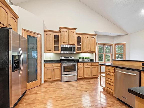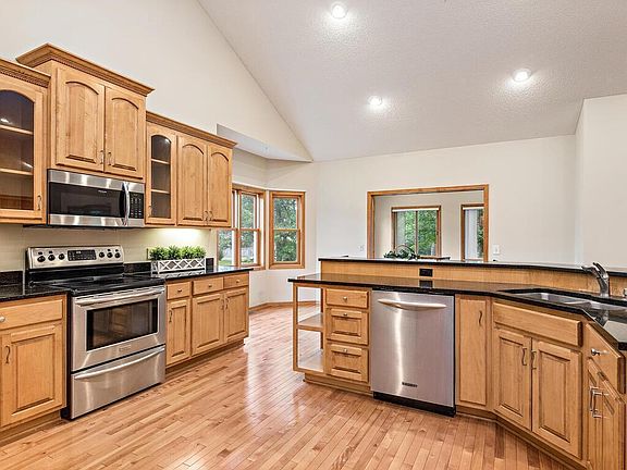 This Home Shows Beautifully! One Level Living With Walk-Out Lower Level! Exceptionally Built Home With Stunning Attention To Detail! Meticulously maintained, open floor plan, hardwood floors, vaulted ceilings, gorgeous maple/alder woodwork through-out, 4-season porch/sunroom, 4- tiled bathrooms, neutral décor through-out, the Great Room hosts a floor to ceiling striking stone gas fireplace, loads of beautiful built-ins through-out the home, Chefs kitchen with all the bells and whistles- SS appliances- granite counter tops- walk-in pantry, formal dining room has a built-in buffet, inspiring main floor master bedroom w/walk-in shower and closet, large mudroom/laundry room on the main level, lower-level walkout has a spacious family room, another floor to ceiling gas fireplace, wet bar, knotty pine on walls and ceilings, many more built-ins, one ensuite bedroom and full tiled bath, over-sized garage, 20x16 deck, 2 cedar closets. Come check it out!