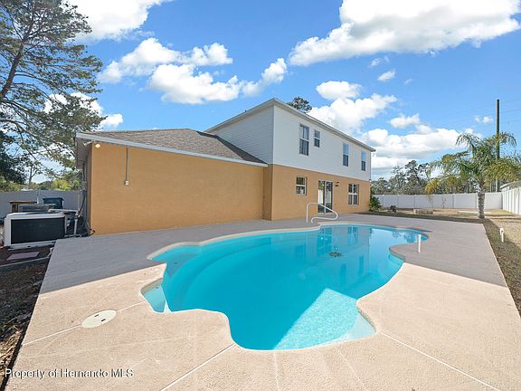 Active under contract accepting backup offers Spacious 3-Bedroom + Extra Room Pool Home with Huge Yard. This SPACIOUS 3-BEDROOM + DEN/OFFICE/EXTRA ROOM could easily function as a 4TH BEDROOM! With 2.5 BATHROOMS, a 2-CAR GARAGE, and an impressive 2,356 SQUARE FEET OF LIVING SPACE, this home offers room to spread out—inside and out. Situated on a ⅓-ACRE LOT that's COMPLETELY FENCED with a VINYL PRIVACY FENCE, there's no shortage of space to relax, play, and entertain. Step inside and immediately notice the NEW ROOF (2021), NEW 4-TON AC UNIT (2019), and HOT WATER HEATER (2020), ensuring peace of mind for years to come. Downstairs features WOOD-LOOK TILE FLOORING and NEWER NEUTRAL PAINT, creating a fresh and modern vibe. The MASSIVE FLOORPLAN includes a FORMAL LIVING ROOM, FORMAL DINING ROOM, FAMILY ROOM, and an OPEN-CONCEPT KITCHEN with a cozy breakfast nook. The kitchen is equipped with WOOD CABINETS and newer appliances, including a stove and dishwasher. The PRIMARY BEDROOM upstairs is a true retreat with a WALK-IN CLOSET and a PRIVATE BATHROOM featuring a GARDEN TUB and a WALK-IN SHOWER. Two additional bedrooms, the versatile extra room, and a second full bathroom complete the upstairs layout. Step outside to the HUGE BACKYARD and SPARKLING POOL, perfect for summer fun and gatherings. Whether it's grilling on the patio or enjoying the Florida sunshine, this yard has the space you've been dreaming of! Located in Spring Hill, just minutes from SR-50, this home offers convenient access to shopping, dining, and amenities, all with NO FLOOD ZONE, NO CDD FEES, and NO HOA to worry about. If you've been looking for a BIG HOUSE with a BIG YARD, this is it. SCHEDULE YOUR SHOWING TODAY!