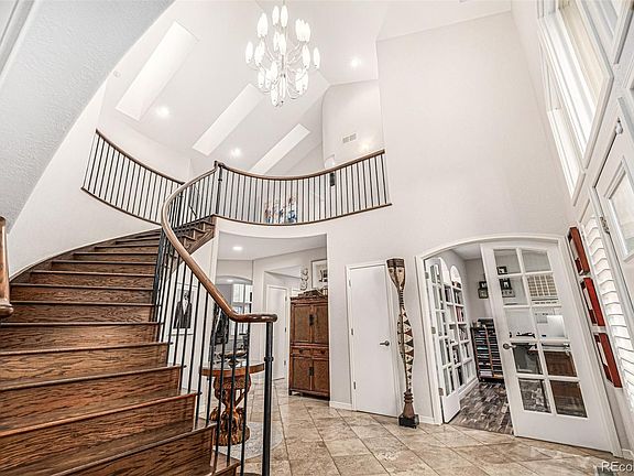 Introducing a residence of unparalleled distinction in the prestigious Cherry Creek Schools, this home is a testament to bespoke design and exceptional craftsmanship. Originally the builder's personal abode, it has a uniquely expansive layout. On entering the soaring two-story foyer, adorned with Acacia floors and a breathtaking staircase, enjoy an ambiance of refined elegance. The main floor study, with its stately built-ins, offers a serene retreat. The epicenter of this exquisite home is the gourmet kitchen; with granite counters, custom cabinets, intricate mosaic tile backsplash, and chic appliances, this space is as functional as it is beautiful. A charming breakfast nook caters to delightful meals, while the formal dining room sets the stage for entertaining. The living spaces flow naturally from the gracious living room to the stunning great room centered on the feature fireplace and stunning wet bar. The intentional design is evident with features from vaulted ceilings, bay windows, and pre-wired surround sound to custom painted wood shutters and graceful skylights. Upstairs, the owner's retreat features a sitting area, fireplace, and lavish ensuite with dual sinks, makeup desk, oversized tub, and dual walk-in closets. The convenient second-floor laundry adds a practical touch, while the meticulously finished basement extends the living area, with a large bonus room, workout room, steam shower, and soundproof music room. An extra bedroom with an ensuite + walk-in closet ensures privacy and comfort for guests. Outdoor living is equally impressive, with a serene backyard featuring charming pergolas and lush landscaping. A unique mudroom and an exceptional storage closet ensure organization and functionality. Located adjacent to Cherry Creek State Park, this one-of-a-kind gem offers both tranquility and convenience amidst an impeccably maintained residence.