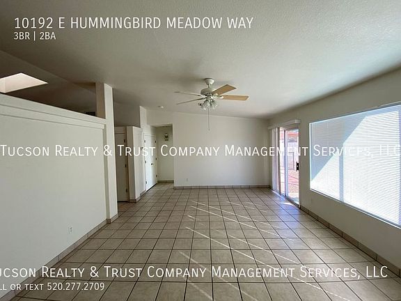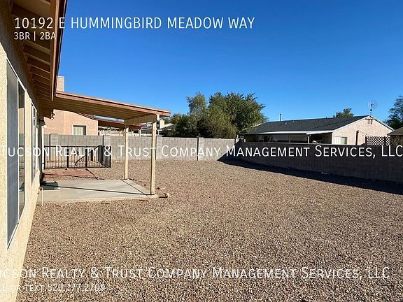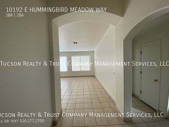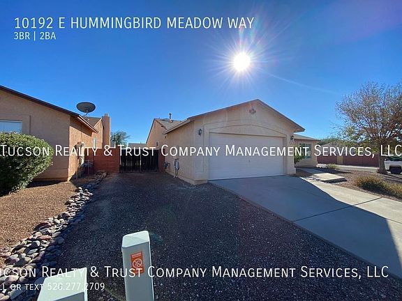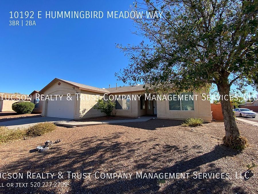 Welcome to Sunrise Meadow at Rita Ranch, where comfort and convenience meet in this charming 3 bedroom, 2 bathroom home located in Tucson, AZ. You'll love the cool, refreshing AC and ceiling fans in the summertime. The entire home features beautiful ceramic tile throughout, adding a touch of elegance to the space. With a 2-car garage, you'll have plenty of room for parking and storage. The primary bedroom offers a spacious walk-in closet, perfect for organizing your wardrobe and a walk-in shower and a dual sink vanity, providing ample space for your daily routine. A laundry room with washer-dryer hook-ups is conveniently located in the home, making laundry day a breeze. Step outside into the large, graveled backyard, perfect for outdoor activities and entertaining guests. Whether you're enjoying a morning cup of coffee or hosting a barbecue, this backyard is sure to impress. Don't miss out on the opportunity to make this lovely house your home. Contact us today to schedule a tour and experience the comfort and convenience of Sunrise Meadow at Rita Ranch! All information deemed reliable but not guaranteed. Pricing and availability subject to change at any time. Please call to confirm details. Equal Housing Opportunity. We do not advertise on Craigslist or Facebook, nor would we require funds to be wired or any funds paid through a payment app on your mobile device. Tucson Realty & Trust Co. Management Services, L.L.C. complies fully with all federal, state and local Fair Housing laws. 2 Car Garage Ac Ceramic Tile Throughout Dual Sink Vanity Large Graveled Backyard Laundry Room W/Washer Dryer Hook Ups Master Walk In Closet Master Walk In Shower Walkin Closets