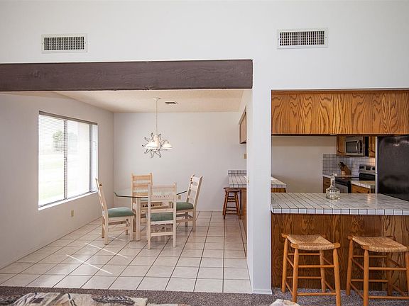 Furnished Golf course condo at Mesa del Sol, beautiful mountain views and glorious sunsets and sunrises. Private club house beautifully appointed, complete with full kitchen, rest rooms, soaring ceilings, pool and spa. 2 car attached garage and private fenced patio open to both bedrooms. Living room with high ceiling, wood beam, fireplace and glass doors to patio that flows to golf course. Kitchen opens to dining room and living room, Full hall bath and master with shower and walk in closet.