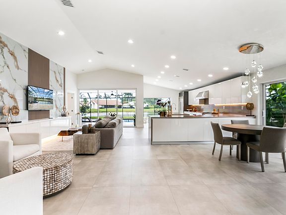 This fully renovated 3-bed, 3-bath home is truly one-of-a-kind, offering high-end finishes professionally designed. Situated on oversized pie-shaped lot at the end of a quiet cul-de-sac, this property boasts the most breathtaking, million-dollar views--truly unmatched. Enjoy the incredible scenery from your heated saltwater pool and spa or while entertaining in the fully equipped outdoor kitchen. It's the perfect space to create unforgettable memories with friends and family. The chef's dream kitchen features 48''gas stove, Wolf appliances and Italian cabinets, plenty of storage. The beautiful quartz island and huge peninsula, make it ideal for gatherings. The master suite is a private retreat with custom closet and a spa like bathroom with double showers and sinks, smart toilet and tub Don't loose the unique opportunity to own this fully renovated house in Boca Woods Country Club: