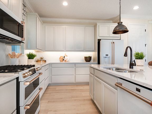 Enter the charming oasis that lies within the Baldwin bungalow floor plan. The 2,441 sq. ft. two-story home with 3-4 bedrooms, 2.5-4.5 bathrooms & a 2-car detached garage presents modern homebuyers with both inviting living spaces, and the space desired for all of their entertaining and spacious relaxation needs. Enter through the foyer into the capacious great room, as you pass by the charming formal dining room. The beautiful designer kitchen overlooks this first-floor space, complementing it with its memorable features. Through the kitchen, in the back of the home, lays the sunny lanai, perfect for outdoor revitalization under the famous Florida sun. Upstairs, you'll find your exceptional primary suite, matched with an impressive primary bath with a dual-sink vanity and spacious shower! The secondary bedrooms and bathroom, and laundry room all share the second floor with your private haven, overlooking the first floor through the overlook. The Baldwin also offers exciting upgrade options throughout the bungalow such as a fourth bedroom, third and fourth bathrooms, game room, study, wet bar, and more! Discover all of these unique design features in Harvest at Ovation.