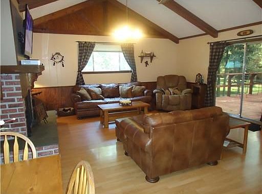 Inviting country home on 3 lush acres. Very open floorplan & vaulted ceiling. Laminate floors, brick fireplace. Lovingly cared for. This is only the second owner. Large 350 sq.ft. deck opens to living area for entertaining and overlooks grounds loaded with azaleas and hardwoods. Tremendous 30x40 workshop plus 1 bed cottage with A/C & heat. Area with many large estates.