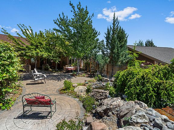 This stunning home offers the ultimate privacy & expansive mountain views from Smith Rock to the Cascades. A gated entry leads through a beautifully pavered, enclosed courtyard with a bubbling water feature. A double door entry to the home welcomes you into the spacious great room with mesmerizing, expansive views, gleaming hardwood floors, raised hearth stone fireplace, wood beams, wood wrapped windows & an accordion 4 panel sliding door which opens to the view deck for seamless indoor/outdoor living. The gourmet kitchen with Jenn-Air double ovens & leathered slab granite counters offers timeless yet modern design with attention to every detail. The selective Italian tile flooring throughout is outstanding for Central Oregon living. A large and private Primary Suite is an oasis with spectacular views, 2 walk-in closets, jetted tub, fireplace & radiant heated floors. Office with separate entry to the enclosed courtyard. 3 car garage with epoxy floor & heated driveway for convenience.