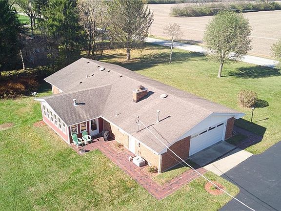 Welcome to the country! This very well maintained 3 bedroom 2 full bath brick ranch sits on 2.5 acres with breathtaking views. Over 1700 sq ft of living space which includes the all season enclosed patio. Gas fireplace in family room/dining room. Outside features a 36 x 28 Pole Barn with electric, concrete floor and metal roof. Updated bathrooms, epoxy flooring in oversized 2 car garage, water softener 2020, water heater 2016, garage door 2020 with keyless entry and french doors to patio 2015. The list goes on! Schedule your showing today. You will not be disappointed.
