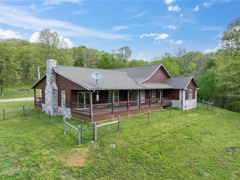 Country home on approximately 4.5 acres overlooking the Spavinaw Creek valley (acreage to be finalized by survey and tract split). Located 35 minutes from Bentonville allows for a secluded setting, while being conveniently located in the Ozarks. The exterior of the home features a combination of rustic stone, warm cedar siding and a covered deck that will allow you to enjoy the views of the countryside. The detached garage accommodates multiple vehicles, while still providing enough room for a workshop. The space above the garage has been finished to allow for an additional living area. The home has 3 bedrooms, 2 bathrooms and an office which could be converted to a fourth bedroom. The living room boasts tall ceilings and a stone fireplace that’s vented throughout the house. The kitchen has been remodeled and features a large granite countertop island, stainless steel appliances and custom cabinetry. Property also being offer as MLS #1244428.