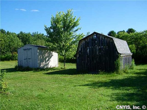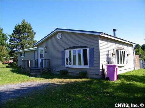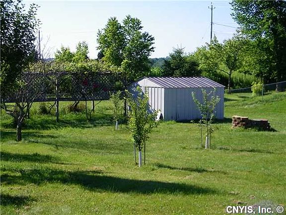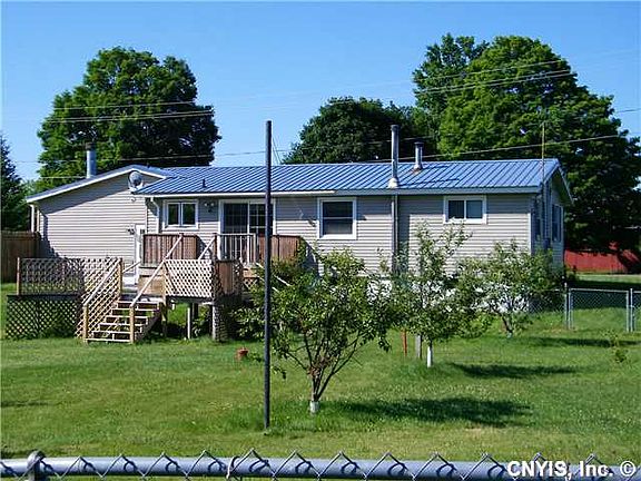 HUGE PRICE REDUCTION!! Charming & inviting country ranch just over the village line, 3 bedrooms & 1 1/2 baths. There's a full basement with hot water baseboard furnace that heats the home & also a wood forced warm air furnace that is totally separate. There's a modern kitchen with oak cabinets, dining area with sliding glass door, large living room & three bedrooms with hardwood floors. You will love the wood burning fireplace in the large family room with entrance to the back yard that is nicely fenced with chain link. Many fruit bearing trees, large grape arbor, tiered deck & 3 sheds!