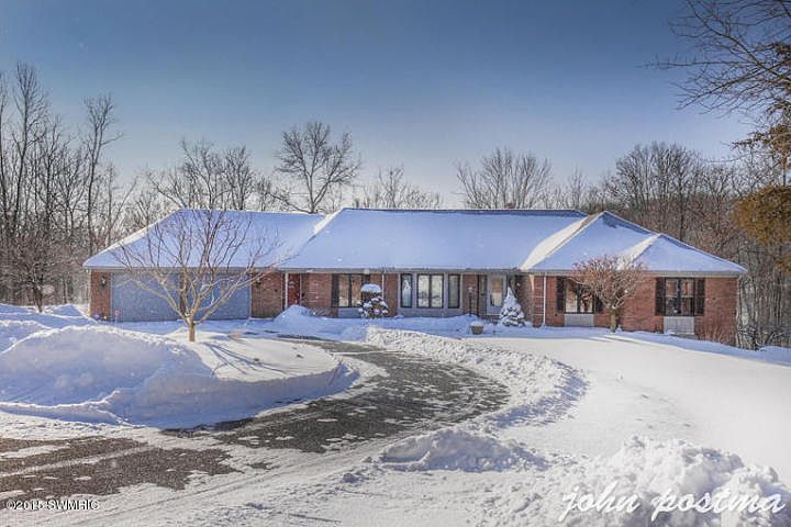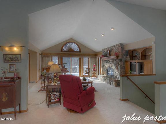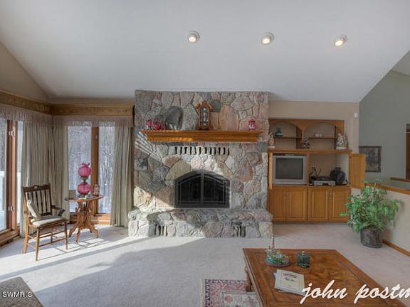Custom-built, 1-owner home on the Thornapple River with 340 feet of frontage. Home was built with handicap accessibility. Great location. Spectacular wildlife. Circular drive on 2+ acres. Open floor plan with views of the river. Vaulted ceilings in living room and custom-built stone fireplace. Western sunsets on the back of the house. Updated appliances. 2 new furnaces & A/Cs in 2010. Roof new in 2009. 2 masonry gas fireplaces. Kitchen with walk-in pantry & dinette with new sliders to 3-season room & deck. Large back entrance area & laundry room. LL walkout with two spacious bedrooms, another Living Room with fireplace, game Room, & exercise room. Additional 840sqft brick carriage house. Deep water by the boathouse and dock. Not in the floodplain. Natural gas. No neighborhood assn. dues.