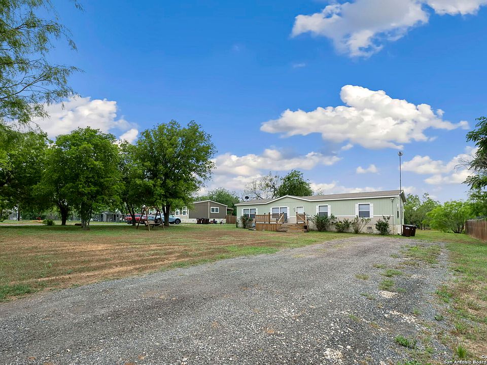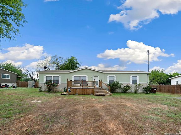 Welcome to this well maintained 2018 4 bedroom 2 bath home on almost an acre. Peaceful country living is at your fingertips! The open concept is great for entertaining and there is a 2nd living area or use it as a game room. The split floorplan gives the primary bedroom more privacy. Great space to be used in multiple ways! Enjoy a glass of ice tea on the newly built deck out front. This property comes with a fenced in backyard and still plenty of land to create your little slice of heaven! Maybe a shop or an even larger fenced in yard for your animals. No HOA or restrictions so the new owner can do whatever they choose. The shed and refrigerator convey so you can just move in and start living! This property is so conveniently located to Hwy 90 and 1604. Easy drive to HEB, Walmart and many attractions such as the Riverwalk, Lackland AFB and Seaworld.