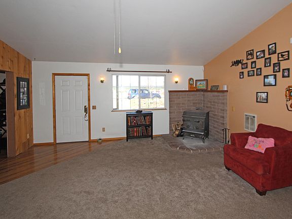 Country living with all amenities and the VIEWS!!!! Room for everyone, 2 separate living areas, open kitchen, Master with private bath on main living area and 1 huge bedroom upstairs. Cozy wood stove, plenty of storage. There is a bonus office room with its own private entrance. 2 car garage with shop area. Enjoy 2.5 acres of MAJESTIC VIEWS, you can add goats, chickens, horses, etc... fenced spacious back yard with covered patio. Privately maintained road, Hauled water with easy and economical delivery! Make this home yours today!