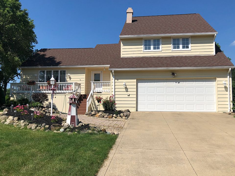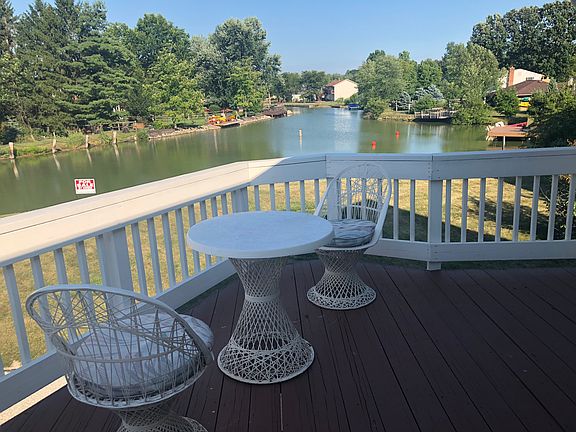 Best view on the channel! Waiting for some fun on the water? This single family Carolina style home has 3 bedrooms and 2.5 baths.Spacious attached 2 car garage. Turn key and and move in ready, completely updated. Open floor plan with rock wall and vaulted ceilings. Gas fireplace included in Living room. All bathrooms updated including Italian tile and granite in the 1/2 bath. Sliders open to new over sized deck with exterior lighting for your family's outside enjoyment. A unique new two tier dock with lighting and electricity for your needs. Upon entering the open concept home many new updates include: the kitchen is a complete new remodel with custom made cabinets, a large center island, granite counter tops, and all new stainless steel appliances-2016, Updated electrical panel and exterior lighting-2016, Large driveway, New Roof-2016, New dock-2017, New deck 2018, Hot water tank-2018, Exterior doors-2018, New fire pit with bench seating-2018. Master bedroom has a walkout balcony with serene views of water and the sunrise. Walk out family room with wet bar and spacious outdoor areas. Aurora Shores includes: Two sandy beaches, a 305 acre lake for your summer enjoyment of boating, tubing, water skiing, kayaking, paddle boarding, two swimming pools, a marina and party center. Two play grounds, organized family sport activities with a baseball field, basketball courts, pickle ball / tennis courts, sand volleyball. Welcome to vacation land!