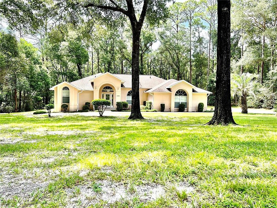 MOVE IN READY! Beautiful home in Rainbow Springs Woodlands. Very spacious, tall ceilings, and split floor plan. Master suite features tray ceilings, access to rear patio, his and hers walk-in closets, and a large master bathroom with two separate vanities, large walk-in shower, garden jet-tub, and private water closet. The kitchen is central to all the main areas of the home, connected to the living/dining room, another dining area right off the kitchen, and the family room, and also features an eat-at bar. Home has a nice gas fire place that the owner has never used. Over-sized garage with built in workbench, lots of shelving, and screen door. Huge covered back porch where you'll find outdoor cabinets and sink, and the third full bathroom with a walk-in shower. Also attached to the back porch is a 34x14 patio with full screen enclosure. The whole back porch/patio area was built with a pool in mind, but is also perfect for a hot tub, general entertaining, or even close in the porch for an easy conversion to an in-law suite or fourth bedroom. Home has been meticulously maintained, everything looks brand new, including the carpet. Home comes with all appliances including washer and dryer (still under warranty), as well as most of the furniture including tables, couches, chairs, beds, recliners, and more. New drain field just installed, new roof in 2015, new HVAC in 2014, new water heater in 2020. This home needs NOTHING. Living in Rainbow Springs means you get access to the community center with a pool, billiards and cards rooms, restaurant/bar, frisbee golf, tennis and basketball courts, workout gym, nature trail, and access to the private park on the beautiful Rainbow River. Located minutes from town. Too much to list here, must come see! ACCEPTING ALL OFFERS.