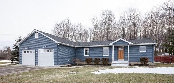 Welcome to this spacious 4-bedroom 2 full bath ranch style home. Open concept floor plan. Cathedral ceilings and a modern farm sink in the kitchen. The house features an attached 2+ stall garage and is situated on a half-acre lot. The property includes perennial gardens and offers beautiful views from the back yard. The furnace and well have been recently updated. Large primary bedroom with private bath that includes a jacuzzi tub and separate shower, nice walk in closet. 3 other bedrooms and a 2nd full bath. Main floor laundry and storage.