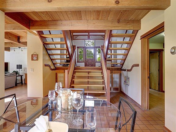 Architecturally Stunning home with use of rich woods and built-ins throughout. Nestled on 3.72 acres with Nishinam Creek, walking trails, seasonal creeks, gardens, solar heated pool and much more. On the main floor is the living room, kitchen and dining, a family room with wood stove, a sunroom, half bath & laundry. Upstairs the master suite with a wall of built-ins overlooks the pool with sounds of the creek. There are 3 more bedrooms, one with a Murphy Bed and a hall bath. The main floor has radiant floor heat and a ventless heat/air unit in the living room. The loft area is carpeted with beautiful wood ceilings, windows and a door into the attic. Need more storage or a workshop? The outbuilding is spacious with water and electricity. There are 2 rooms upstairs with a deck and another room downstairs along with an attached garden shed. Enjoy the pool or walk the property and you will find trails down to the creek, a fire pit, veggie garden area and numerous places to sit and enjoy!