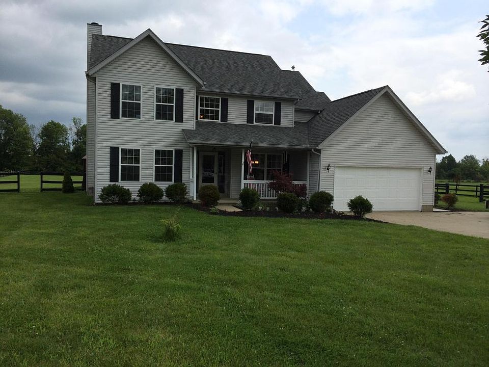 Remarkable home has been professionally remodeled! Hardwood floors highlight the entry, den and kitchen, beautiful granite and stacked stone backsplash with stainless steel appliances. New carpet in the family room with fireplace. Split staircase with rod iron spindles, remodeled owners' suite with gorgeous tile floor, granite vanity top, new faucets & large whirlpool tub, hall bath and half bath have been remodeled as well with granite. Finished lower level offers built in speaker system for surround sound tv area and a rec area. New patio offers great outdoor living space right off the kitchen and overlooks the 2 acre lot that has 3 board perimeter fencing. This one is a 10!