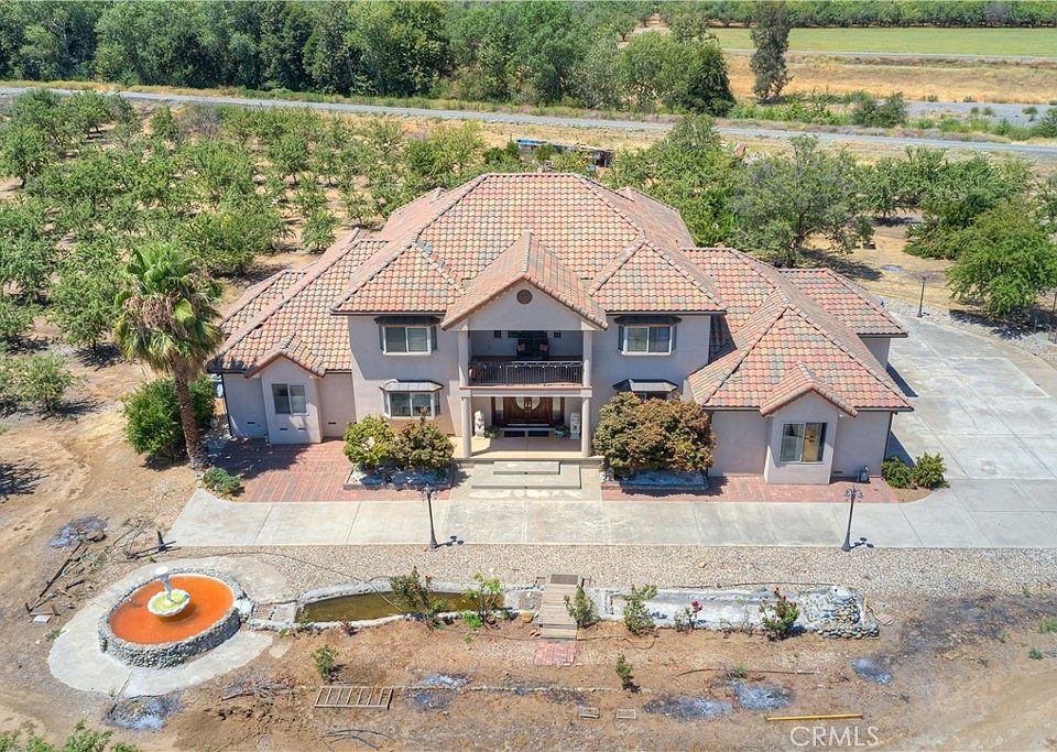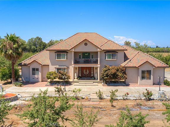 Wonderful estate property nestled in the highly sought after Durham area. Tucked away on 10 acres of 5 year old Almonds, with the home being at the back of this property for amazing privacy and peace. The home boasts an expansive floorplan with a grand staircase upon entry, highlighted by a one of a kind crystal chandelier hanging over the top. The large formal dinning room can accommodate many guests for that special meal which has been prepared in the chefs kitchen. Speaking of the kitchen, an abundance of hardwood cabinets, solid granite counter tops, spacious island, double ovens, and stand alone gas cooktop enabling you to create a plethora of fine cuisine. Main floor offers large office or den area, with additional 1/2 bath off kitchen area and full bath off the rear past laundry room and storage area. The primary suite is located on the main floor as well, with double walk in closets, large bedroom area, and complete with a very spacious bathroom offering double sinks, vanity area, custom walk in shower, and huge jet tub. The main floor is complete with expansive family/living room adorned with soaring woodbeam ceilings and bar area, which also has a dumbwaiter making life easy. Upper level offers 3 full bedrooms and bonus room used as 4th bedroom. Full guest suite with a private patio for peaceful times to reflect on life. Additional two bedrooms, both are full size with their own walk in closets and access to exterior patios. The bathroom for these bedrooms is a jack and jill style, ample counter space, tub shower combo and lots of cabinets with laundry chute to laundry room below. The property consists of two parcels which equals roughly 10 acres in total, full commercial well with fully irrigated orchard. The home is to the rear of second parcel which backs up to Butte Creek meaning nothing will ever be built behind you. Abundant concrete decks and patios, with two large concrete patios off the rear, one on second level and one on ground level. Spacious 3 car garage and lots of parking space both in garage and out front and side on concrete. Wired with Generac back up generator just in case. Orchard is leased by private party, trees are 5-6 years old so really starting to produce, lessee pays 30% of harvest to owner and does all the work. Well is commercial well roughly 250 feet deep with 8 inch pipe. Not many of these properties come available often in Durham, don't miss you opportunity here.