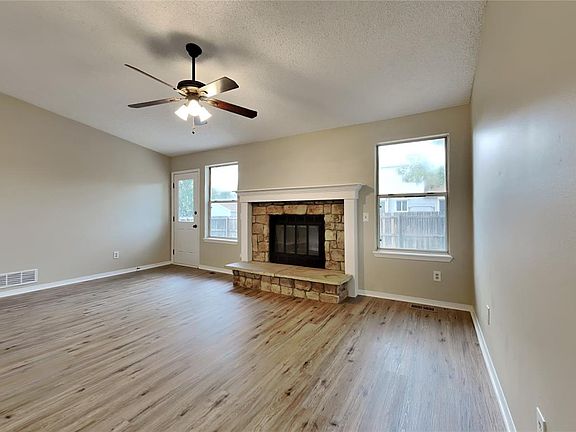 Welcome home, this elegant and thoughtfully designed 1-story residence boasts 4 bedrooms and 3 bathrooms. Step inside to discover a seamless open-concept layout, perfect for modern living and entertaining. The heart of the home is the spacious living area, illuminated by an abundance of natural light streaming through large windows. The brand new luxury vinyl plank floors and new carpet throughout exude warmth and elegance, while the cozy fireplace adds a touch of ambiance to those cooler evenings. The gourmet kitchen is a chef's delight, featuring stunning quartz countertops. New stainless steel appliances offer both a contemporary aesthetic and top-notch functionality. Retreat to the tranquil primary suite, complete with an en-suite bathroom. The additional bedrooms are spacious and versatile, ideal for family, guests, or a home office. Conveniently located near schools, parks, shopping, and dining, this home offers the ideal blend of suburban tranquility and urban accessibility. Don't miss your chance to own this exquisite corner lot gem! Schedule a showing today and make this dream home yours!