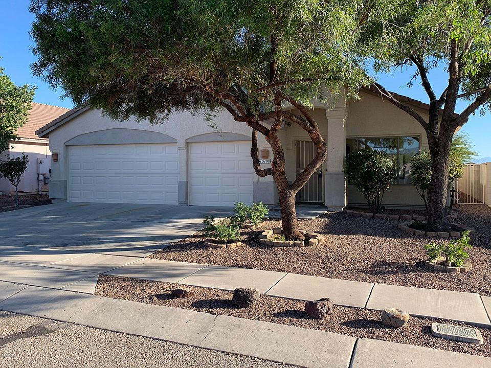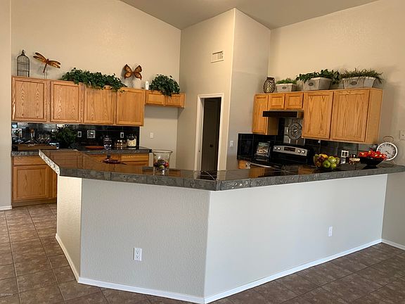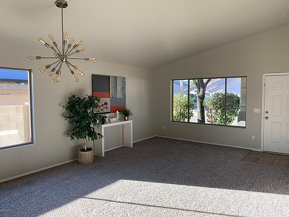 Sellers are licensed real estate agents in Arizona. Front of this home is Aesthetically pleasing & has that hard to find 3 car garage Great room concept with high ceilings offer big rooms throughout. Split bedroom floor plan. Large kitchen has tons of cabinet storage, countertop & breakfast bar space. New interior paint, New stainless steel stove, New carpet & vinyl plank flooring, New fixtures & New garage doors & openers. Master & 2nd bedrooms have large walk-in closets. Bathrooms have lots of countertop space. Separate Laundry room. Covered rear patio with Mountain view & landscaped yard. Ask listing agent about solar panels being assumable or removed.
