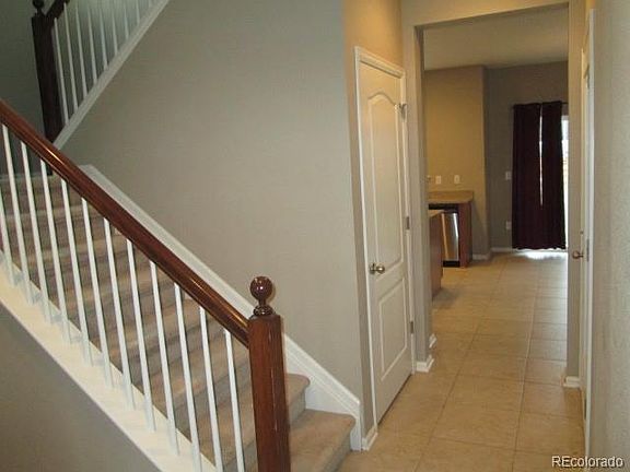 Back on the market and no FHA financing...sorry. Amazing home in coveted Reunion. Enjoy the kitchen's granite counter tops, stainless steel appliances, central island, tile floor throughout the main level and perfect size back yard with it's flowing pond and fish. Imagine yourself warming up and relaxing next to the gas fireplace on cold Colorado nights. The master bedroom has a beautiful bath with custom closet organizers. There are 4 bedrooms, a second full bath and the laundry on the upper level. The 800 sf open basement is great for storage or to make an exercise room. All bedrooms are above normal size. The central air conditioning will keep you cool while the sprinkler system keeps your yard looking great. The attractive back porch is stamped concrete; perfect size as you grill those BBQ ribs on a calm spring evening. The home is located on a corner lot with easy access to shopping and DIA.