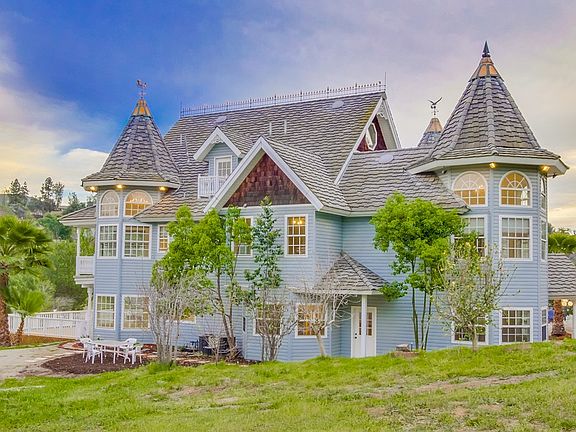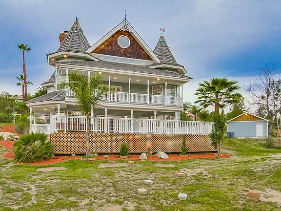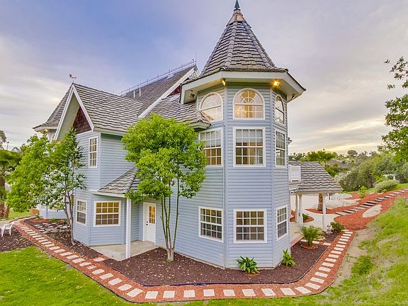 Beloved Victorian Masterpiece located in Blossom Valley. Placed on 2 Acres with Horse amenities, tool house with full bath and tack room for horses. First floor features home office, Spiral staircase leads to theater room with private bathroom that could be great guest house area. Large master suite with walk in closet, Jacuzzi tub, and a chandelier above. Large redwood deck with Jacuzzi tub and gorgeous views. Other upgrades include r-30 insulation, reinforced concrete floors, new water heater, 2 AC units, and 2 furnaces. Incredibly built with copper topped spires, 6 inch thick walls with heavy insulation, upgraded vinyl windows, no maintenance vinyl siding, everything built to last with the highest quality materials! Fully gated with automatic iron gates and gorgeous driveway lighting on massive concrete drive with circular! Fully fenced. 100's of thousands in improvements on one of the most beautiful and famous homes in one of East County's premier neighborhoods! Once in a lifetime opportunity to own a truly magnificent dream home!! CALL TINA 619-846-2229