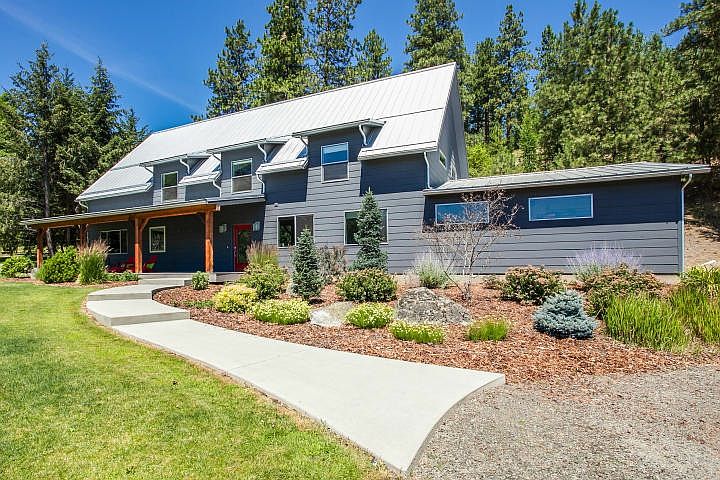 This home is perhaps the most incredible home to be listed in Leavenworth. It is in a very private setting with gorgeous views of the icicle canyon and surrounding mountains. It's not even a mile from downtown Leavenworth but you will feel far removed from any activity at all. The home was built in 2010 with a very modern design but with the attention to detail in tying in the rustic touches of the historic building that sat on this very spot. Reclaimed wood is everywhere and something that you will be in awe of with how it ties in to a very comfortable and warm feeling as you enter the front door. The most amazing island you have ever seen is the center of the incredible chef's kitchen which opens into the open living and dining area. The large glass doors open up to the serene outdoor living area complete with a propane fire pit and speaker system that will have you living outside as much as you can. This is the ultimate home for entertaining! There is a main floor bedroom but the upstairs has 2 guest rooms and an amazing master suite that is the ultimate in comfort and quality. This home sits on 2.5 acres and if you so desire you could even split off a couple of lots for a good return on your investment and still retain your privacy. The most unique feature here is the 5,000 square foot historic barn that has been updated with a finished shop area and redone foundation. This package is one you will definitely need to see in person because words simply cannot describe the feeling you will have when you are on site.
