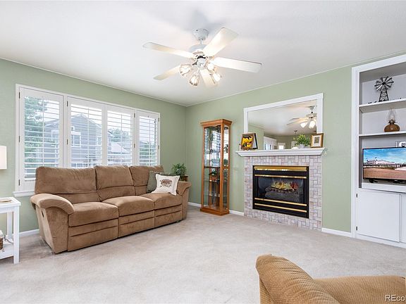 In one of the best locations in Highlands Ranch, this fabulous, well-maintained 3000 sq ft home features a cozy gas fireplace with built-ins, house fan, A/C, high ceilings, lots of windows with plantation shutters, office with double glass doors, newer water heater and a 3/4 bath on main floor next to the office. With 3/4 bath on main floor next to the office which could be converted into a bedroom, this would be a prefect main floor living home....even laundry is on the main floor! You'll notice how well the seller took care of this home very clean and well-maintained! The gourmet kitchen has wood floors, lots of cabinets, built-in micro-wave, breakfast bar, new refrigerator, SS stove and bright & sunny breakfast nook that leads to the pretty backyard. The master bedroom with high ceilings, commercial size window, ice cold central air and and house fan and pretty accent window is spacious enough to add a sitting area, baby crib or even a desk. You'll love the large 5 pc master bath with lots of cabinets, granite transformation counter top and soaker tub with 2 windows above. Step out into the nice, fenced backyard with large two-tier deck, sprinkler system, peonies, roses and mature peach tree full of peaches. Design included for the basement....add a fourth bedroom! Lots of storage in the attached 3-car garage! This is one of the only homes, if not the only home in Highlands Ranch with a 3 car garage under $600K. Highlands Ranch has a host of community activities, 4 fantastic rec centers with tennis courts, pools and gyms with lots of classes! Plus, around 70 miles of trails including Plum Valley Park, Spring Gulch Park and Chatfield Reservoir! Close to Aspen Grove, light rail, UC Health, Highlands Ranch golf Club, shopping, restaurants and major highways!! Walking distance to award winning Douglas cty schools! Friendly neighbors! Great location! Fabulous house! Come out and see this beautiful home today!