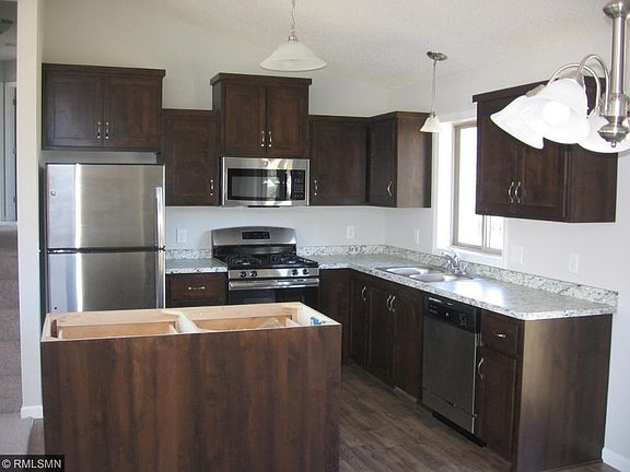 Brand new 3 bedroom 2 bath loaded with options, granite top Island, Pantry, desk, Dark stained cabinets with white enamel woodwork, Stainless steel kitchen appliances, Gas Range, Double vanity in master, Walkout basement, Concrete driveway, Sprinklers and sod included, Ready to move in.