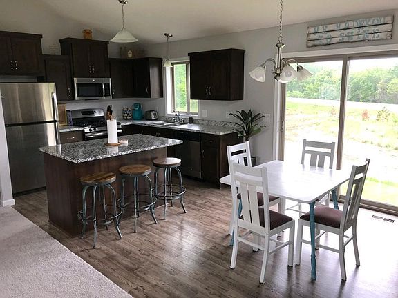 One year old 3 bedroom 2 bath loaded with options, Granite top island, Pantry, Desk, Dark stained cabinets with white enamel woodwork, Stainless steel kitchen appliances, Gas Range, Double vanity in master, Walkout basement, Concrete driveway, Sprinklers!
