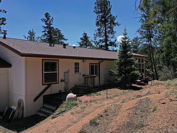 Welcome home to this serene mountain paradise on 35 beautiful acres. Secluded, yet convenient to town. Bordering Pike National forest on 3 sides with county maintained road in front and only a few minutes from shops and restaurants in Florissant or Lake George. This spacious 3 bedroom 2 bath home has all the features you could desire. Huge decking in front for enjoying the beautiful Pikes Peak view. Large backyard for entertaining and enjoyment. The home also boasts a large deck off the family room with a hot tub and more seating, plus a view of Blue Mountain. Massive primary suite includes an ensuite 5 piece bath, a ceiling fan, and plenty of windows. The large country kitchen with a kitchen island/breakfast bar will be the center of your home, and the breakfast nook alongside will be your favorite place for coffee in the morning. The furnace is new in 2024, a new roof was installed in 2022, new well pump in 2020 and new garage door opener in 2024. The kitchen boasts a newer (2017) KitchenAid 5 door refrigerator, a KitchenAid 6 burner double oven range, a Bosch dishwasher, and a new in 2024 Samsung Washer and Dryer. There is plenty of southern exposure for your gardening, lots of amazing rock outcroppings, pasture for your horses (or animal of your choice), and storage space for all of your toys. The school bus even stops on the county road. The domestic well allows for horses or even some cattle. Fish creek runs occasionally too. Enjoy the columbine gardens, the mature growth pines, spruce, and fir trees, and there are even some aspen groves. This amazing mountain retreat will be move in ready. Original plans were to use this home as a guest house, or for the kids, and build the dream home on one of the other amazing building sites. That option still exists for the next owner. Property was surveyed at 35 acres but records show 34.06 online. Seller is working to remedy that.