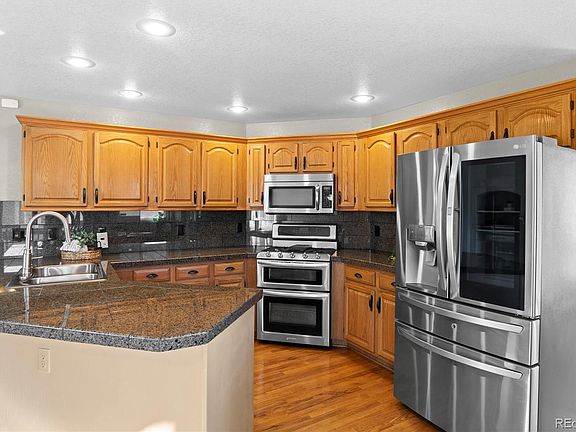 Welcome to this exceptional home in the highly sought-after Stonegate neighborhood! Boasting 4 bedrooms, 4 baths, a finished basement, and a 3-car garage, this property offers plenty of space and comfort. You'll love the bright, open floor plan filled with natural light, complemented by hardwood floors throughout the main level and eye-catching vaulted ceilings. Ideal for entertaining, this home features formal dining and living areas, a cozy family room with a gas fireplace, and a stunning chef's kitchen complete with stainless steel appliances, granite countertops, and a breakfast nook that opens to a covered deck—perfect for morning coffee or evening barbecues. The main floor also includes a private home office and a convenient half bath. Upstairs, the spacious primary suite offers a spa-like retreat with a large soaking tub, separate shower, dual vanities, and a large walk-in closet. The laundry room, complete with washer, dryer, and extra storage, adds functionality. The finished basement includes a custom Murphy bed and a full bath, making it an ideal guest space. Recent updates include a brand-new roof, and the home is perfectly positioned within walking distance of the elementary school and close to Stonegate’s amenities—two pools, tennis courts, pickle-ball courts, walking trails, parks, and easy access to C-470 and I-25. Visit https://www.svmd.org/recreation for more information.. Plus, you’re just a short drive from Parker’s historic Main Street, where you’ll find charming events, dining, boutique shopping, and a weekend farmers market.