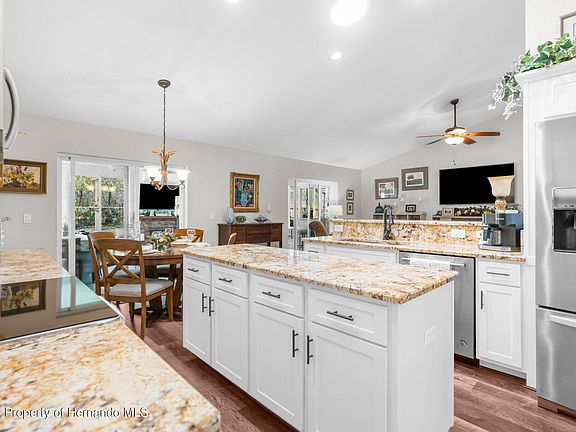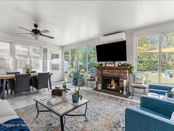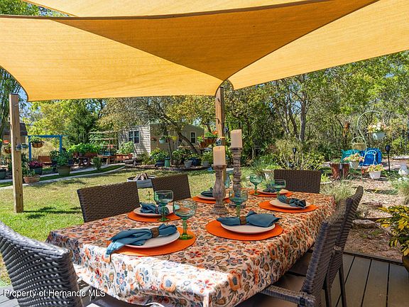 STUNNING HOME on a DOUBLE LOT with AMAZING OUTDOOR LIVING SPACE...like something out of the pages of a magazine!! Immaculate and clean!! Every inch of this home is loved and well-maintained! NEW ROOF 2023!! NEW INSULATED WINDOWS 2020!! 3 bedrooms + 2 bathrooms + 2-car garage + a large acrylic glass air-conditioned gathering room + large screen-in lanai + outdoor deck with 6-person jacuzzi and triangle sunshades and lighting + uncovered patio with covered grilling area + greenhouse + a large man-cave shed with electric and mini-split AC that will call to anyone who needs a space of their own away from the house...all this is nestled on a double lot giving you twice as much space as your neighbors! The backyard with privacy fencing is an oasis in itself!! This property gives an elevated outdoor experience!! Large home with 1,974 sq ft living space; 2,968 total! and The GORGEOUS glass room on the back of the home is a retreat from the day-to-day...making your feel like you are outside when you are inside and offering views of the landscaped backyard that are private, relaxing, and good for the soul! The natural light is therapy! You have to feel how comfortable it is!! The additional, covered and screened-in lanai overlooks the outdoor jacuzzi area! This is a great home for entertaining with all the extra seating space inside and outside!! The home offers a formal living room + formal dining room + large upgraded, remodeled kitchen that is open to the family room + breakfast nook + HIGH CEILINGS so the home feels light, bright, spacious, and cheery! OPEN FLOOR PLAN and SPLIPT FLOOR PLAN for privacy for the master suite! The kitchen was remodeled and upgraded with gorgeous granite countertops and real wood, upgraded cabinets!! The kitchen offers a large granite island breakfast bar for extra seating! Newer stainless steel appliances! The breakfast nook has a large glass slider to let in natural light! The home has Luxury Vinyl Plank flooring throughout most of the home!1 The spacious master suite offer two walk-in closets, an ensuite bathroom that was remodeled and upgraded with granite countertop, real wood cabinets, dual sinks, a large and inviting walk-in shower with beautiful frameless glass!! The second bathroom was upgraded a real wood cabinet, stone countertop, and offers a shower/tub combo! The laundry room is a good size with a laundry tub and extra storage cabinets! The home has upgraded designer lighting fixtures and ceiling fans! This home has so much to offer! Located near everything is a GREAT LOCATION, near the highly desired area of Cortez Blvd and Nightwalker. Close to shopping, coffee shops, restaurants, groceries, movies, Oak Hill Hospital! Minutes from kayaking down the crystal clear Weeki Wachee River with the manatees and the state park and Buccaneer Bay Water Park! 10 minutes from the sunset at Pine Island, boating, fishing, swimming at the white sand beach of Roger's Park on the clear refreshing river! 7 minutes from the Suncoast Parkway for easy and quick access to Tampa! 1 hour+ to TOP US BEACHES! The home and the area has so much to offer!! 3 solar tubes; one in the kitchen and two in the bathrooms. Washer and dryer convey! The big stuff is already done...NEW ROOF 2023!! New energy-efficient INSULATED WINDOWS 2020!!