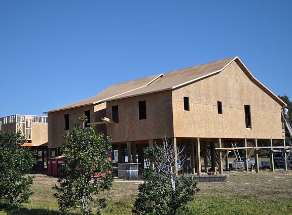 The Georganna plan has nearly 1200 square feet on one level with open floor plan. Optional living/storage space and garage available on ground floor.Bermuda shutters and metal roofs give a beachy feel for the budget minded. Just 2 minutes from the pristine beaches of Topsail.