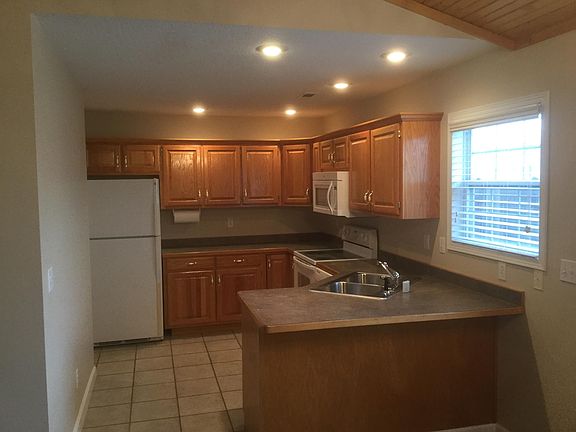 Wood cathedral and vaulted ceilings, new floor coverings. Freshly painted with new interior doors and hardware. New countertops All kitchen appliances and washer and dryer. 1 car garage with opener Pictures are of unit 104. 102 unit is identical except 102 has painted cabinets with new high definition Formica and white subway tile backsplash Tenant pays utilities and mows lawn