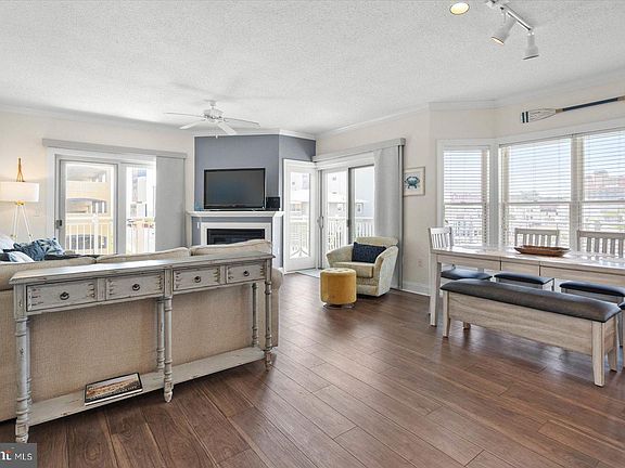 Don't miss out on this amazing opportunity to own a stunning 3 bedroom ocean block condo just 1 block from the world-famous Ocean City Boardwalk! Gaze at the ocean view from the large wrap-around balcony and also catch a glimpse of the bay. The open floor plan floods the space with natural light through multiple windows and sliders. The fully equipped kitchen boasts quartz counters, a convenient breakfast bar, and new stainless steel appliances. Enjoy the warmth and coziness of the gas fireplace, along with the modern amenities of ceiling fans, recessed lighting, crown molding, fire sprinkler system and new vinyl wood flooring in living room & dining area. New furnishings in 2024 include the couch, dining room table & chairs, sofa table, ottoman and entryway storage unit / 2023 the queen bed frame was replaced / 2022 include the king bed, bed frame and the twin bed in the bunk room. Also, all TV's have all been replaced within the past 3 years. The primary bedroom features an en-suite bathroom, a walk-in closet and sliders to the balcony. This condo is not only perfect as a second home but also has great rental potential. The consistent rentals have netted the seller $37K in 2022, $35K in 2023 and for 2024 there is $32K net booked with more weeks open for rentals! The convenient location at 25th St allows for easy access to the Beach, Boardwalk, Jolly Rogers Amusement & Water Park, miniature golf, water sports, many restaurants, shopping and entertainment. Mahalo amenities include an outdoor pool, 2 assigned covered parking spaces, an elevator, a private storage shed and the gas for the fireplace is included in the condo fees. The reserve study has been completed and there are no special assessments, per management company. Time to start making your beach memories here!