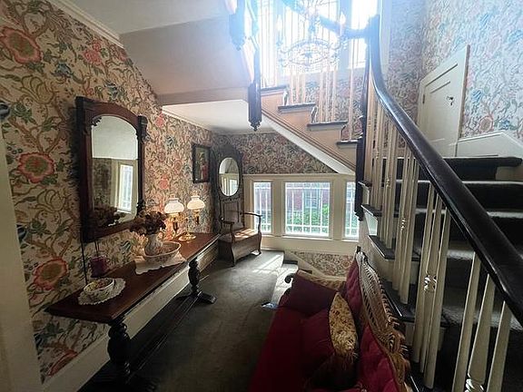 Grand home located in the heart of the historic district. The first thing you will notice when you enter the home is the beautiful foyer and ornate woodwork. The large living room with fireplace flows to the enclosed sunroom. The formal dining room features another fireplace and built ins. The updated, cherry kitchen with granite countertops extends to the butler's pantry with ample storage. There is also a half bathroom and den on the first floor. The second floor has three bedrooms and a full bathroom. Additionally, there is a large bedroom and another full bathroom on the third floor. The lower level is also finished and features a huge family room. Other features include a two stall detached garage, updated heating and air, and a private back yard. Call today for a showing!