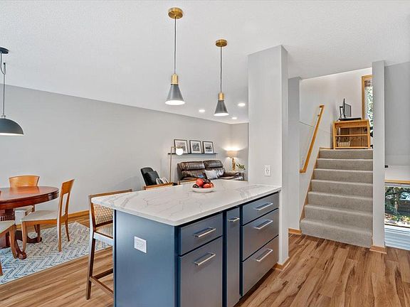 Stunning condo in St Anthony West now available! This move in ready 2 bed, 2 bath condo will not disappoint. You'll fall in love with the private rooftop patio, views of nature, & prime location. Updated top to bottom with gorgeous finishes including: LVP flooring (2020), updated kitchen (2020), gas fireplace (2023), high efficiently furnace & A/C (2021) and more! The main living space showcases an open floor plan with sizable living room w/ gas fireplace & spacious dining room leading to a private deck. Beautiful kitchen with custom soft close cabinetry, quartz countertops, tile backsplash and stainless-steel appliances. Upper level offers 2 generous sized bedrooms including a walk-in closet. There is a 1 car garage with off street parking within the HOA. Location is hard to beat! Located across the street from the Mississippi River/Nicollet Island and walking distance to downtown stadiums, restaurants, breweries, coffee shops, parks, trails and more. Healthy HOA! This is a must see!